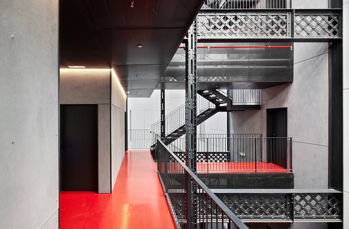 The refurbishment project transforms the former industrial premises into a residential building with 39 apartments and two retail units at street level. The design maximizes the façade perimeter in response to the corner site, ensuring optimal daylight and ventilation. Access is provided through the existing entrance, reimagined as a double-height lobby and gatehouse. The original street façade is fully preserved and restored, maintaining its historical texture within the urban context.
